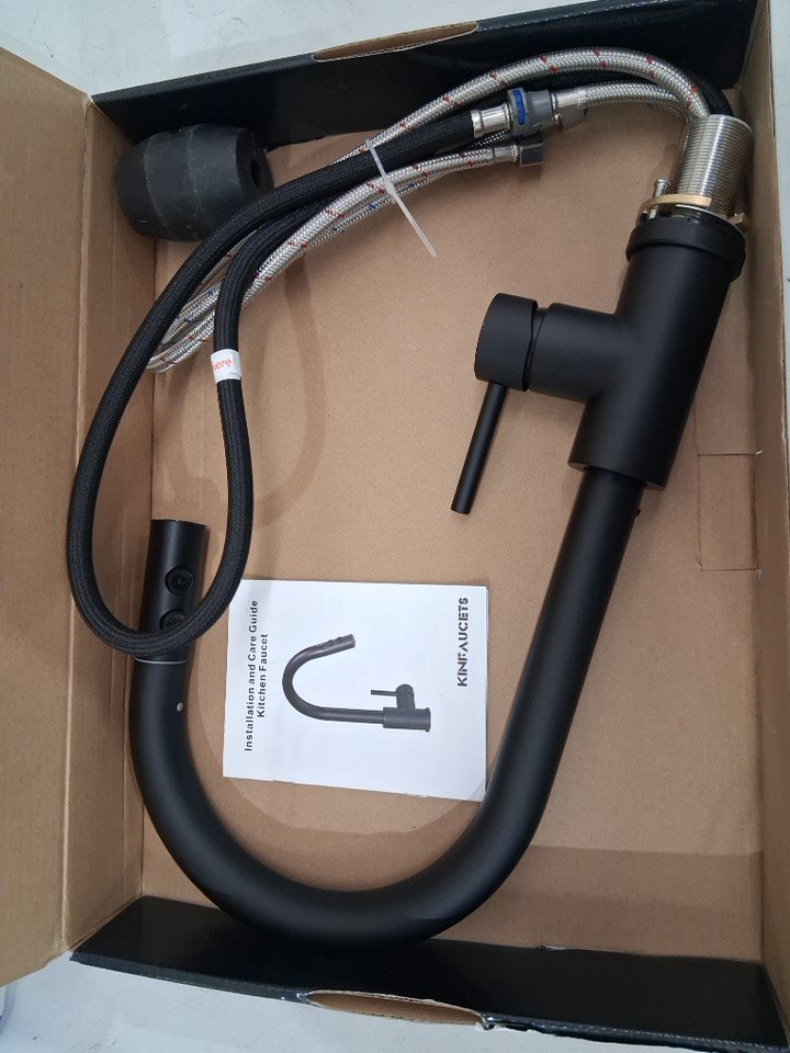 rainmax Modern Solid Brass Pull Down Kitchen Faucet with Single Handle - Black - (model: kf008b)