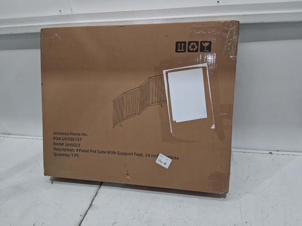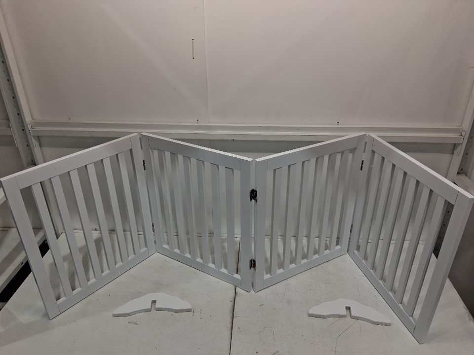 UNIPAWS FREESTANDING 4-PANEL PET FOLDING WOODEN PET GATE INDOOR BARRIES WITH SUPPORT FEET 24" X 80" - WHITE (MODEL: UH5023)