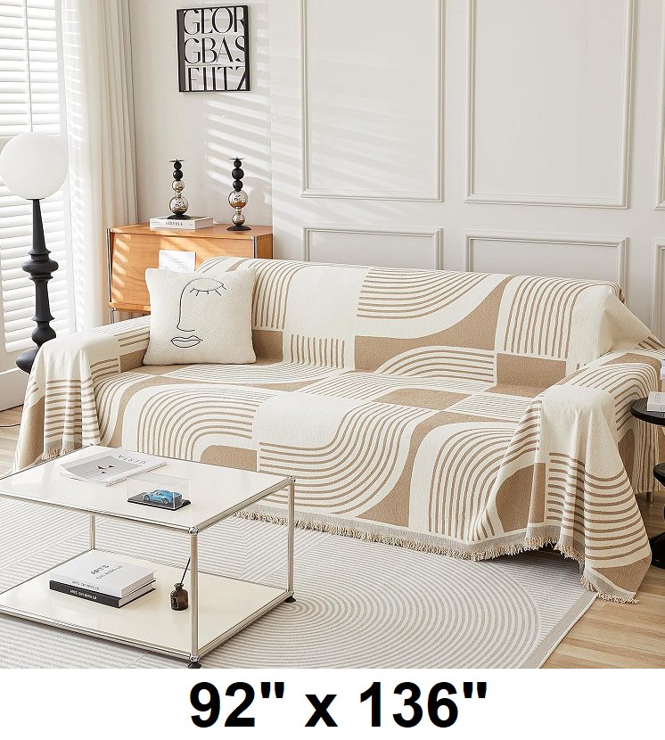 weyond machine washable Pet Friendly chenille bohemian style sofa cover protector - 92" x 1136" - natural/taupe