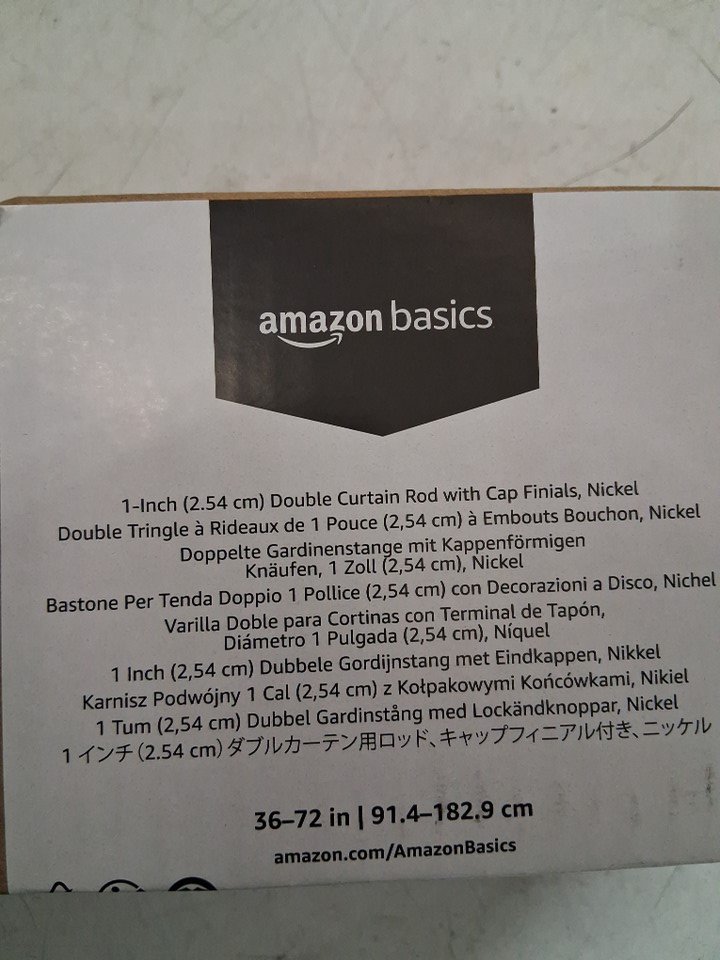 x2 AMAZONBASICS 1" THICK DOUBLE CURTAIN RODS WITH CAP FINIALS - 36" - 72" - NICKEL