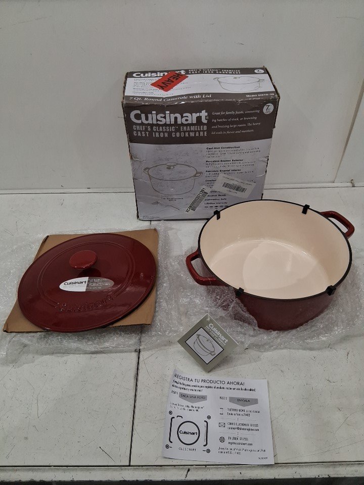 CUISINART CHEF'S CLASSIC ENAMELED CAST IRON ROUND CASSEROLE with lid - 7QT - cardinal RED (MODEL: CI670-30cr)