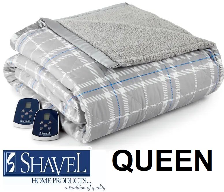 shavel micro flannel heated blanket - queen size - programable timer - Carlton Plaid Gray (model:80211)