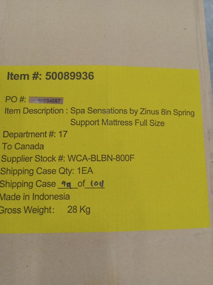 Zinus Spa Sensations 8 inch Support Spring Mattress - full (model: WCA-BLBN-800F)