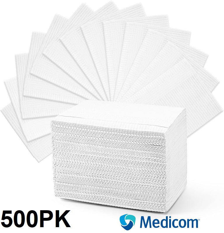 500PK MEDICOM SAFEBASICS Dry-back BIBS/LAP CLOTHS/TATTOO BIBS - 2-PLY PAPER + 1-PLY POLYFILM - 13" x 18" - white (model: 8283)