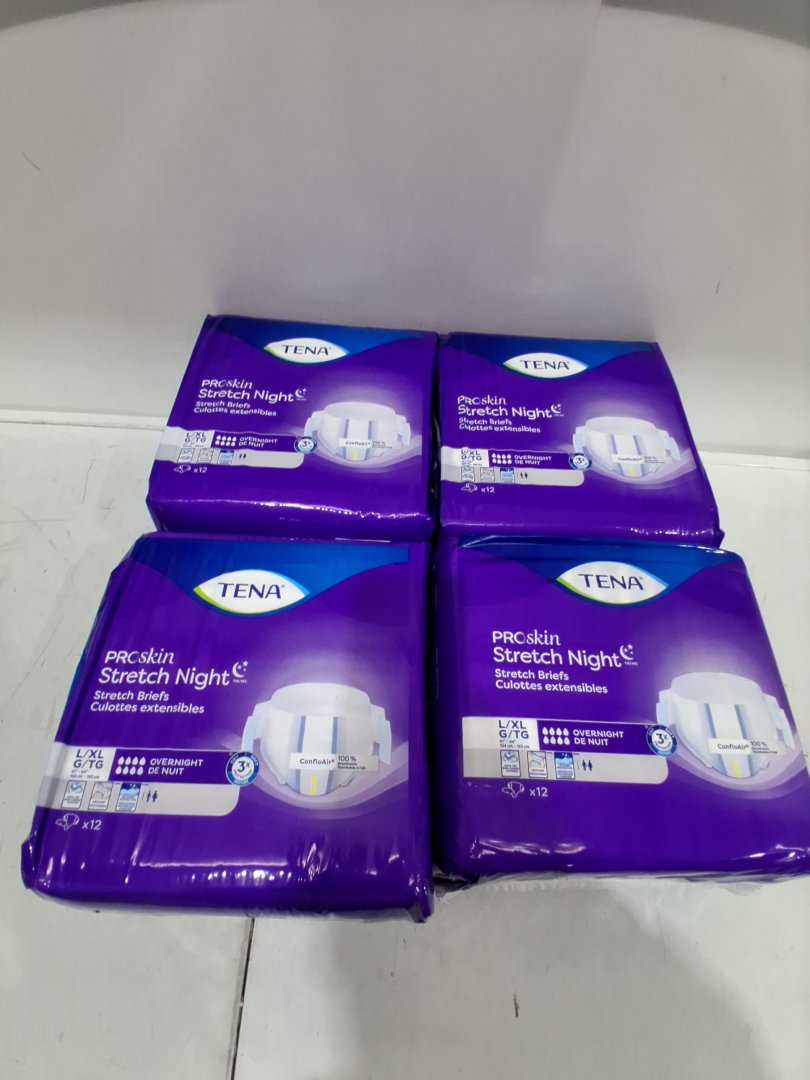 48pk tena proskin stretch night overnight briefs - large/extra large - white