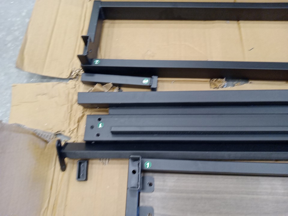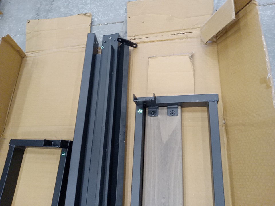 missing hardware and manual. some of the footboard has multiple scuffs and is detached from the from. see images.