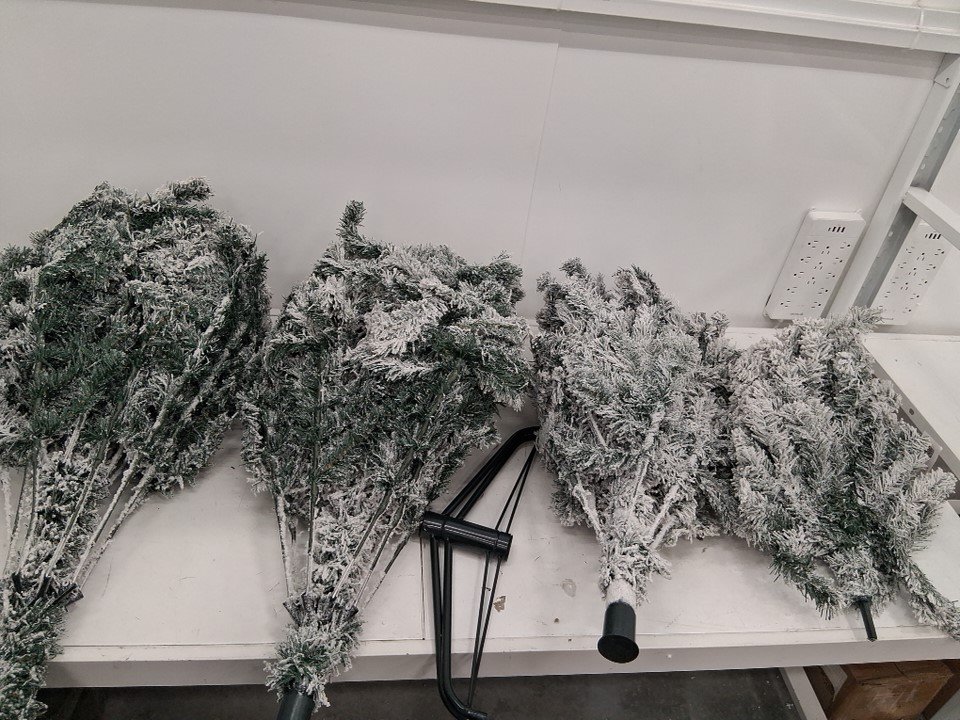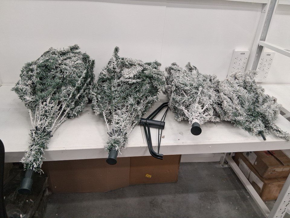 COSTWAY UNLIT PREMIUM Snow Flocked Hinged Artificial Christmas Tree with Metal Stand - 7.5FT (MODEL: cm22068)