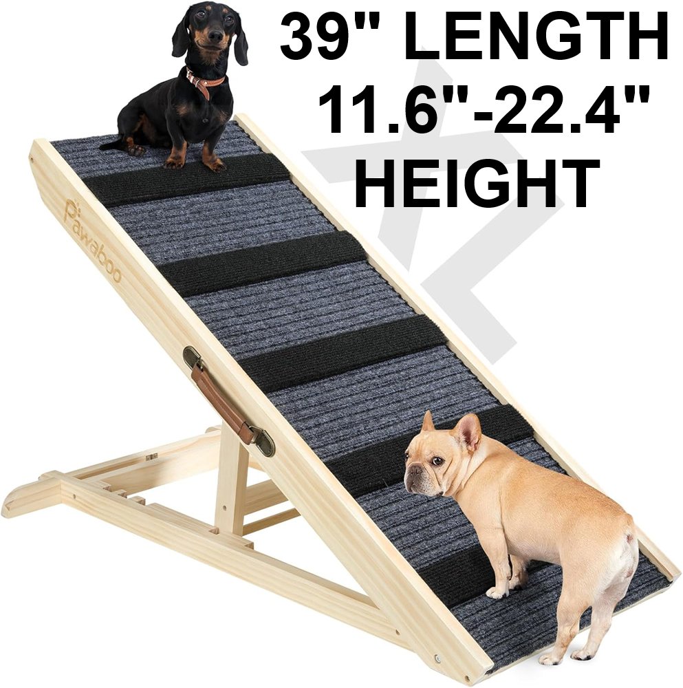 Pawaboo Dog Ramp for Bed and Couch - Adjustable Height, Max 143lbs,