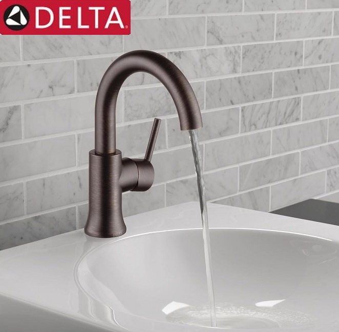 Delta Faucet Trinsic Single-Handle Bathroom Faucet with Diamond Seal Technology and Metal Drain Assembly - Bronze (model: 559HA-RB-DST)