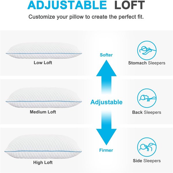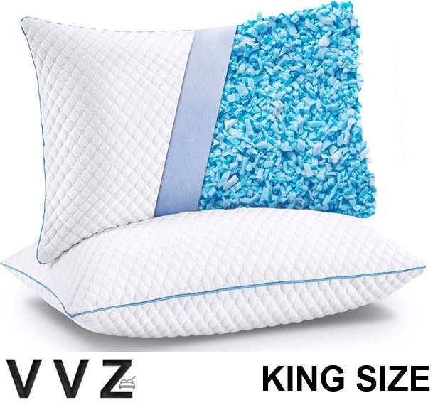 VVZ Cooling Shredded Memory Foam Pillow - king - 20" X 36" - white\blue