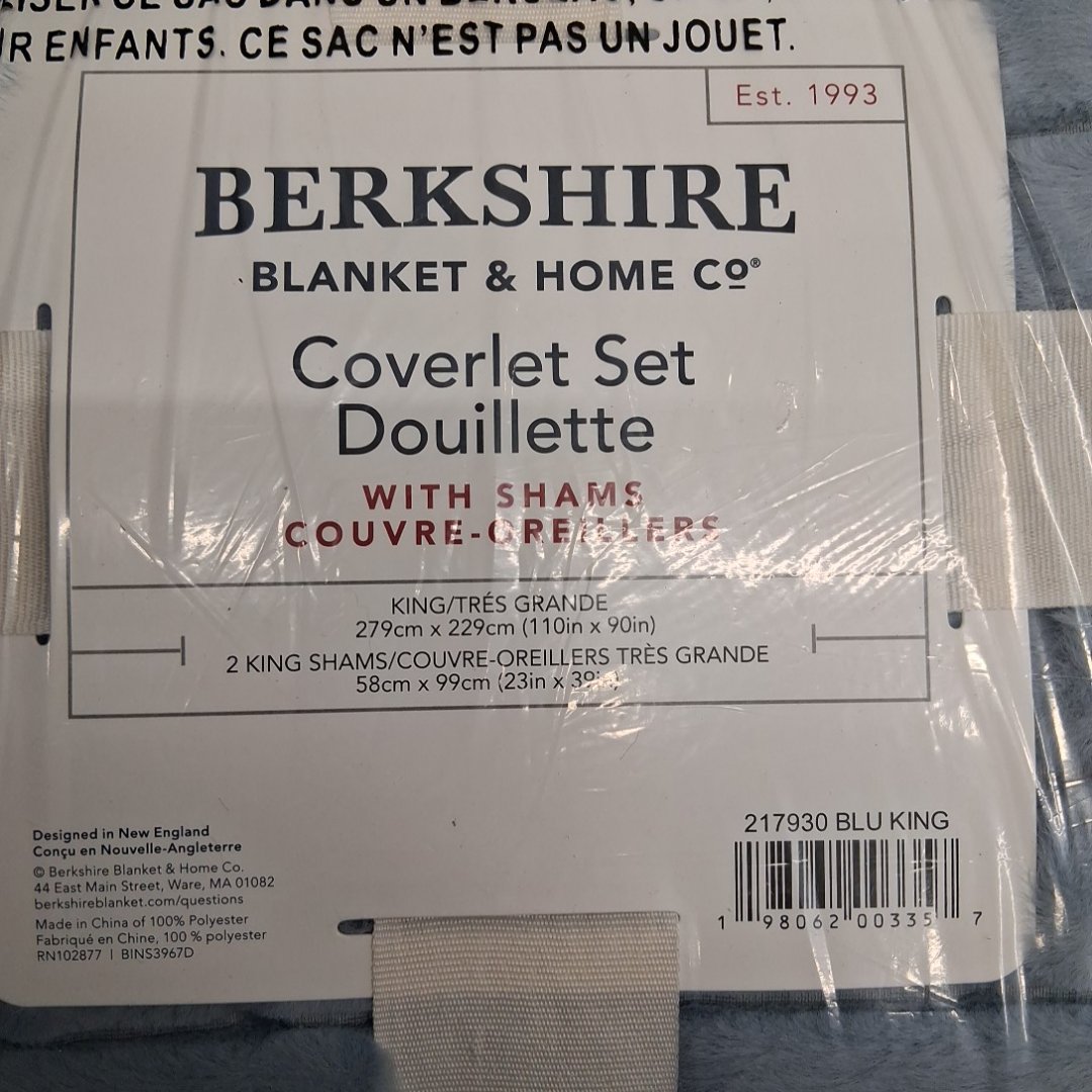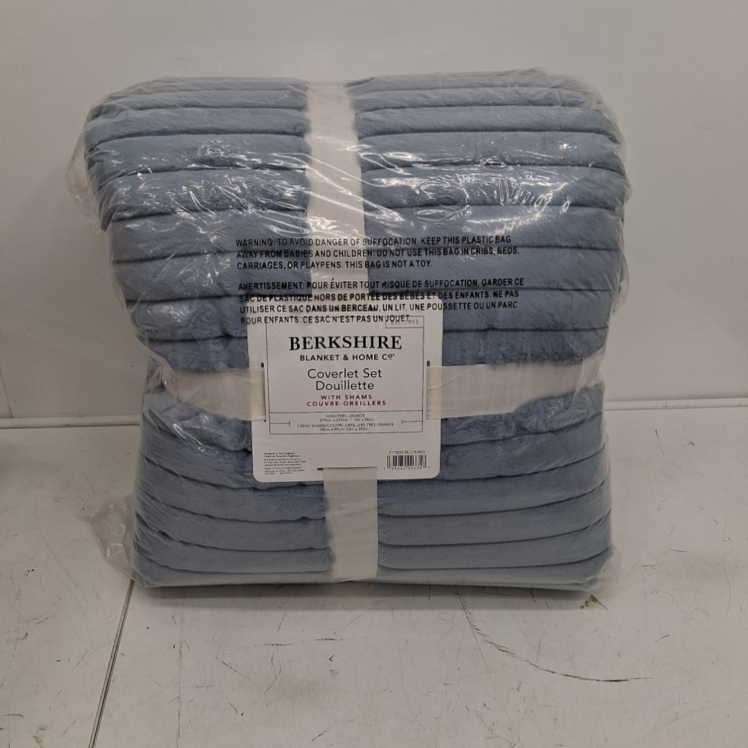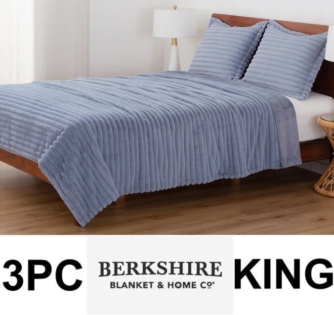 3PC berkshire grace jacquard stripe fur coverlet set - king - blue (MODEL: 217930)
