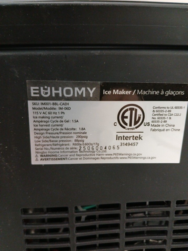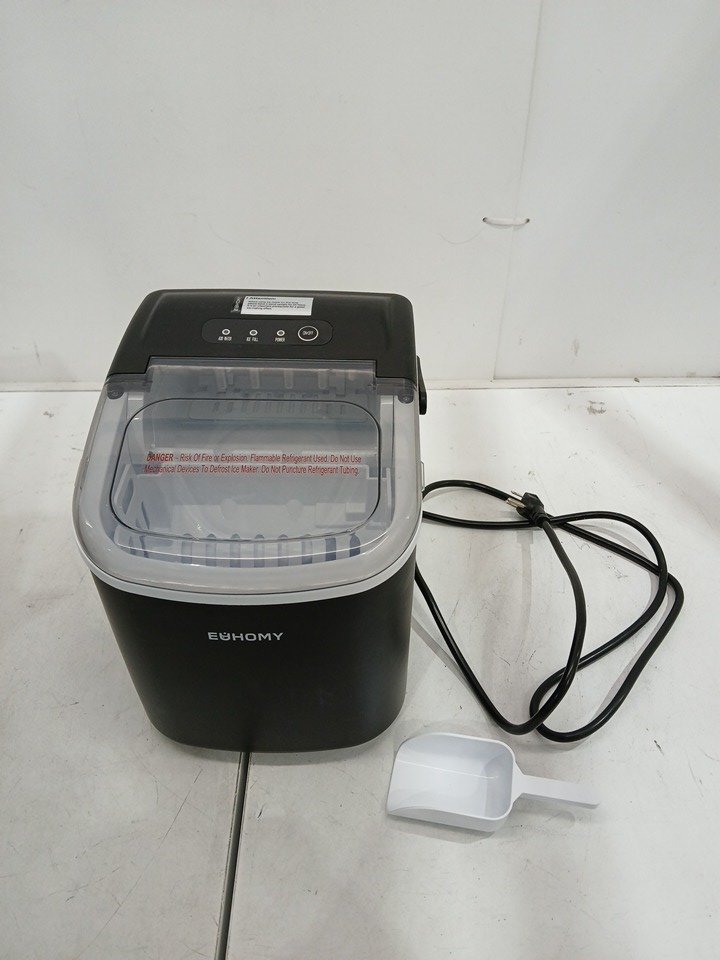 EUHOMY Countertop Ice Maker Machine with Handle, Basket and Scoop - MAKES 26LBS Per Day - BLACK - (MODEL:IM001-Bbl-CAEH)