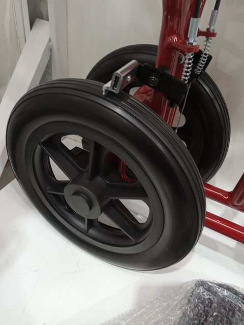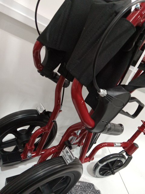 MEDLINE BASIC ALUMINUM TRANSPORT WHEELCHAIR - 19" - 12" REAR WHEELS WITH BRAKES - RED (MODEL: MDS808210ARE)