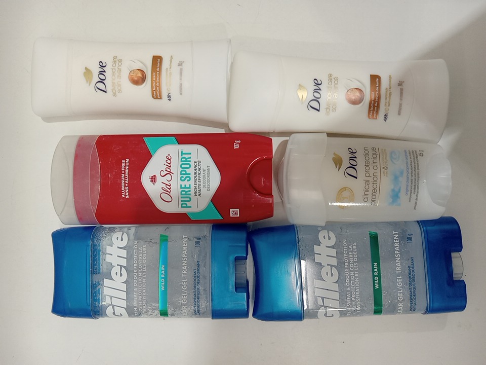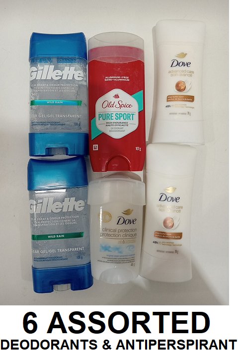 6 unisex assorted deodorants & antiperspirant products - assorted brands / sizes