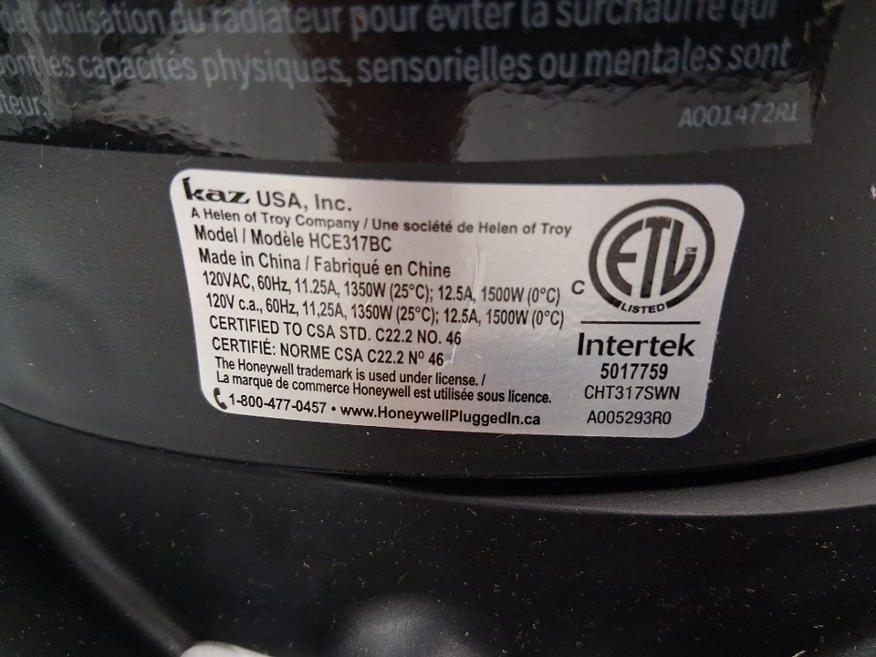 HONEYWELL SLIM CERAMIC TOWER SPACE HEATER WITH DIGITAL TOUCH CONTROL - 21"- black (MODEL: HCE317BC)
