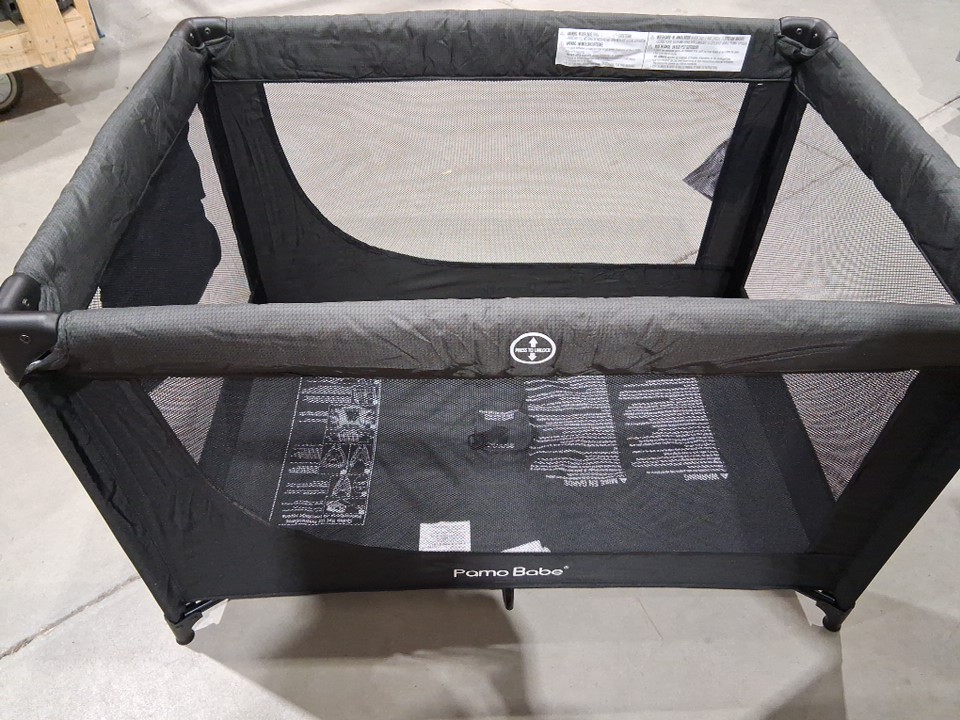 Pamo Babe Portable Crib Baby Playpen with Mattress and Storage Bag - 39" x 27" x 27" - Black - (MODEL : P901)