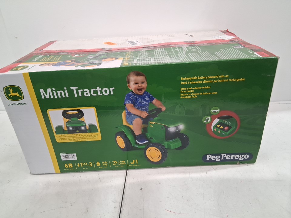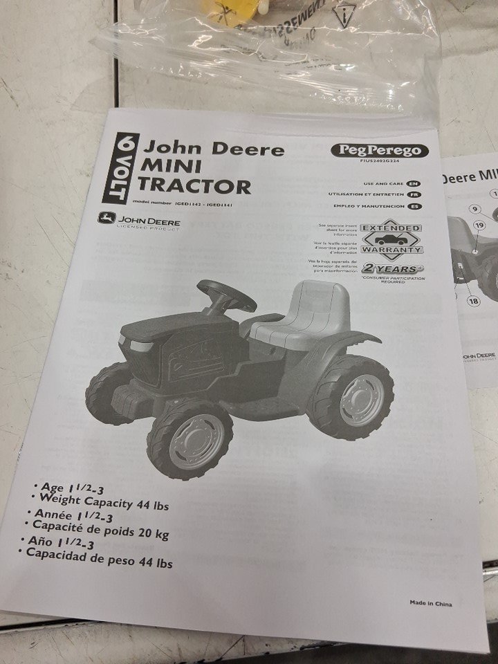 PEG PEREGO THE JOHN DEERE MINI TRACTOR 6V RIDE ON, 1.5 MPH WEIGHT CAP 44LBS
