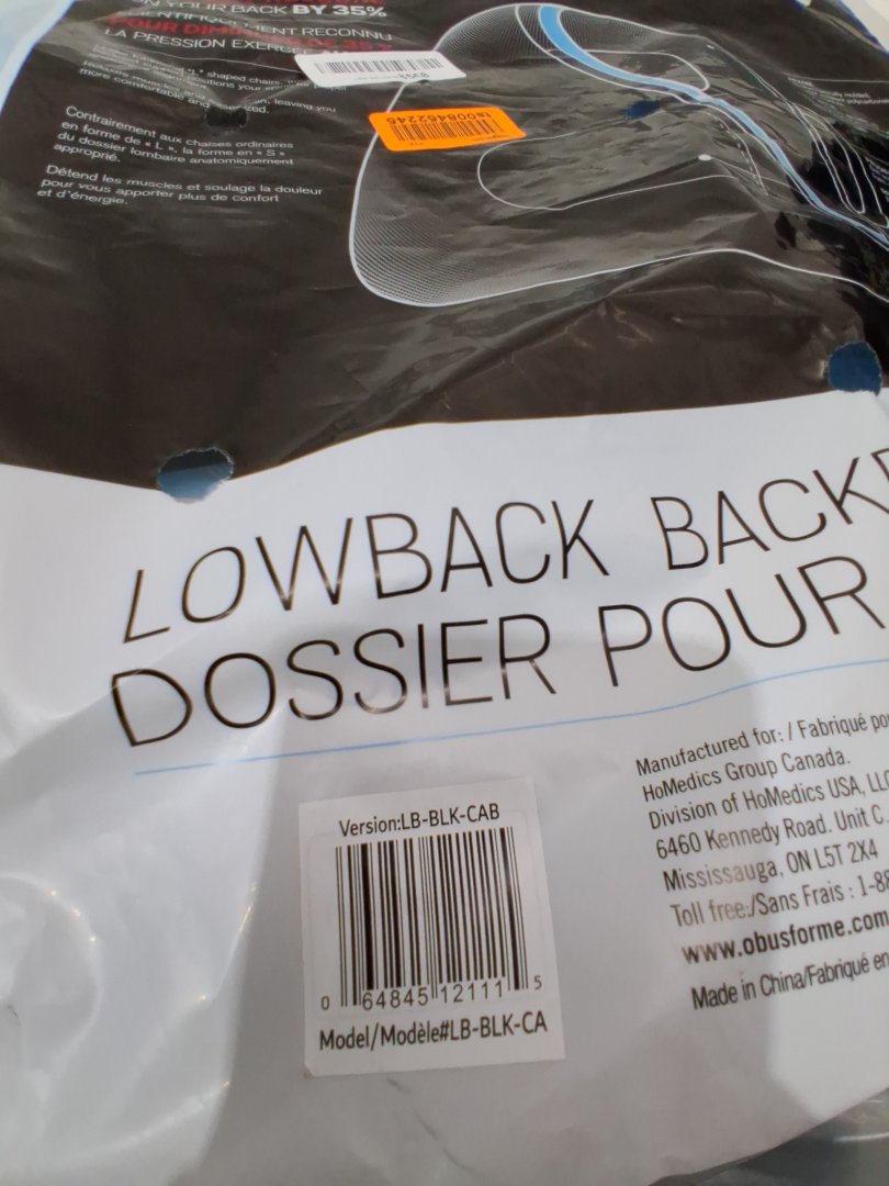 OBUSFORME LOWBACK BACKREST SUPPORT - 21" x 17.5 " x 7" - BLACK (MODEL: LB-BLK-CAB)