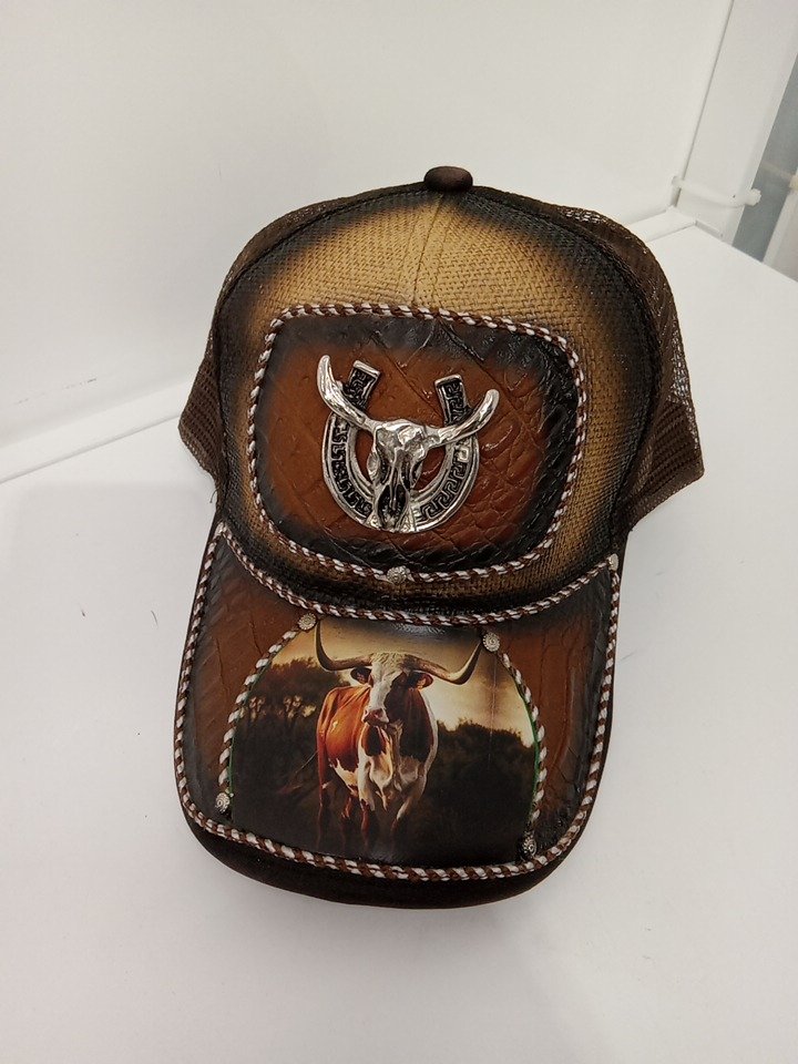 J & A CAPS INNOVATION western snapback ball cap with longhorn skull/horseshoe emblem & bull graphic - OSFM