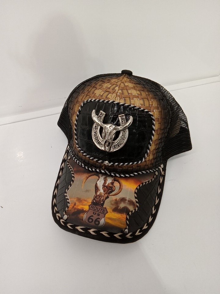 J & A CAPS INNOVATION western snapback ball cap with longhorn skull/horseshoe emblem & bull graphic - OSFM