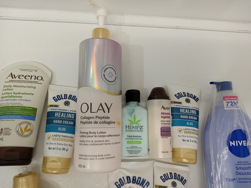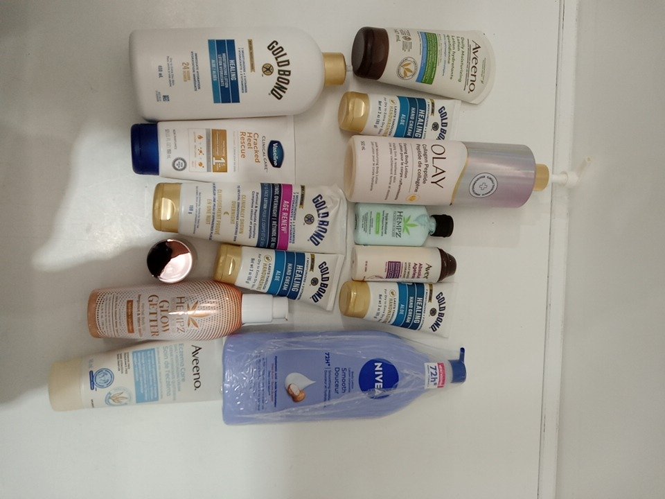 14 assorted body , hands and face lotions - assorted brands / sizes