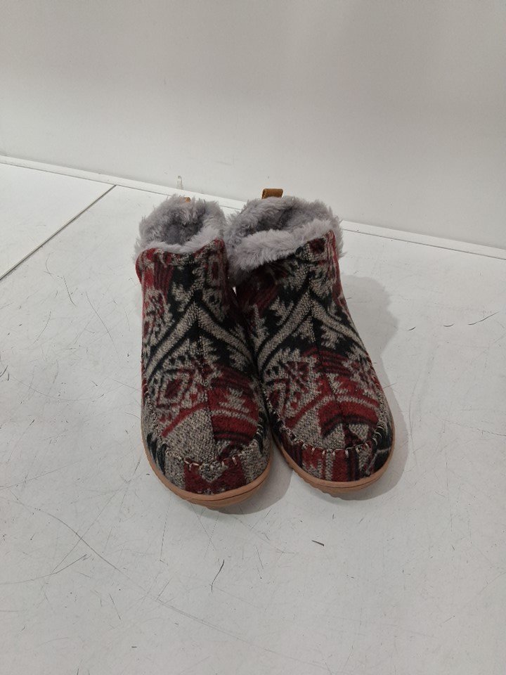 mens dearfoams alpine brixen bootie indoor/outdoor slipper - size 8 - grey/red