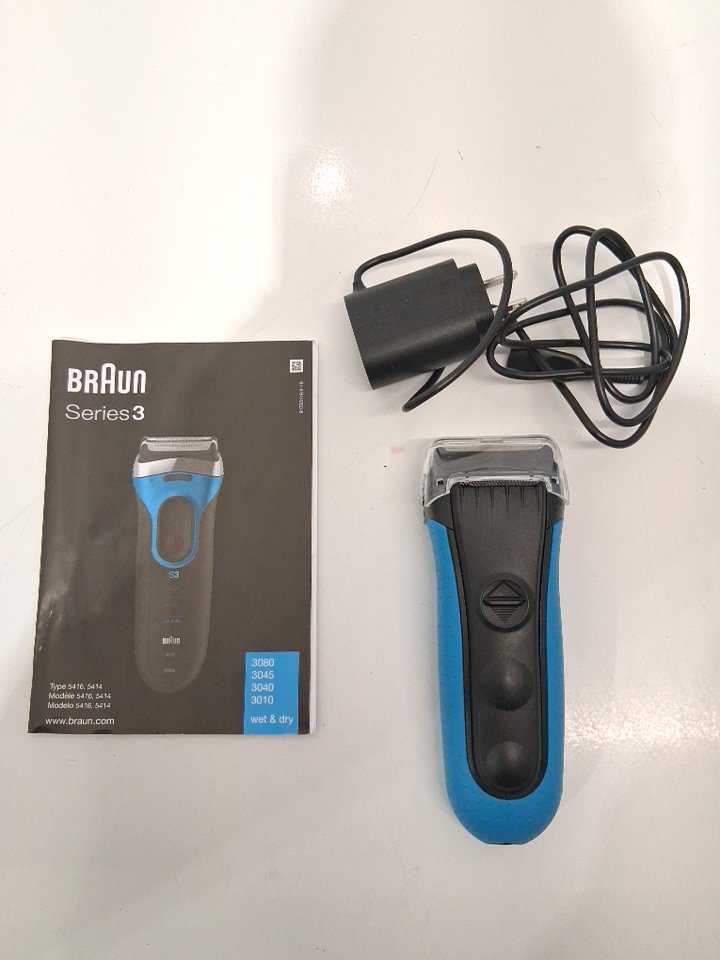 Braun Series S3 ProSkin Men's Electric Foil Shaver / Rechargeable Electric Razor, Wet & Dry - Blue (model: 3040s 5416).