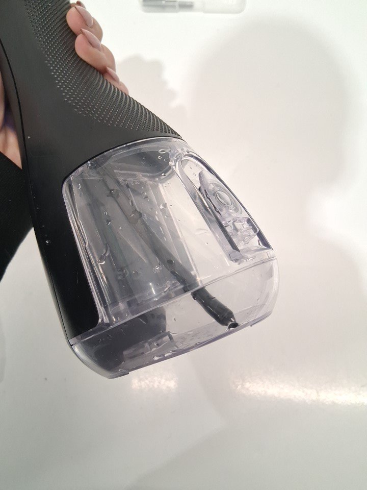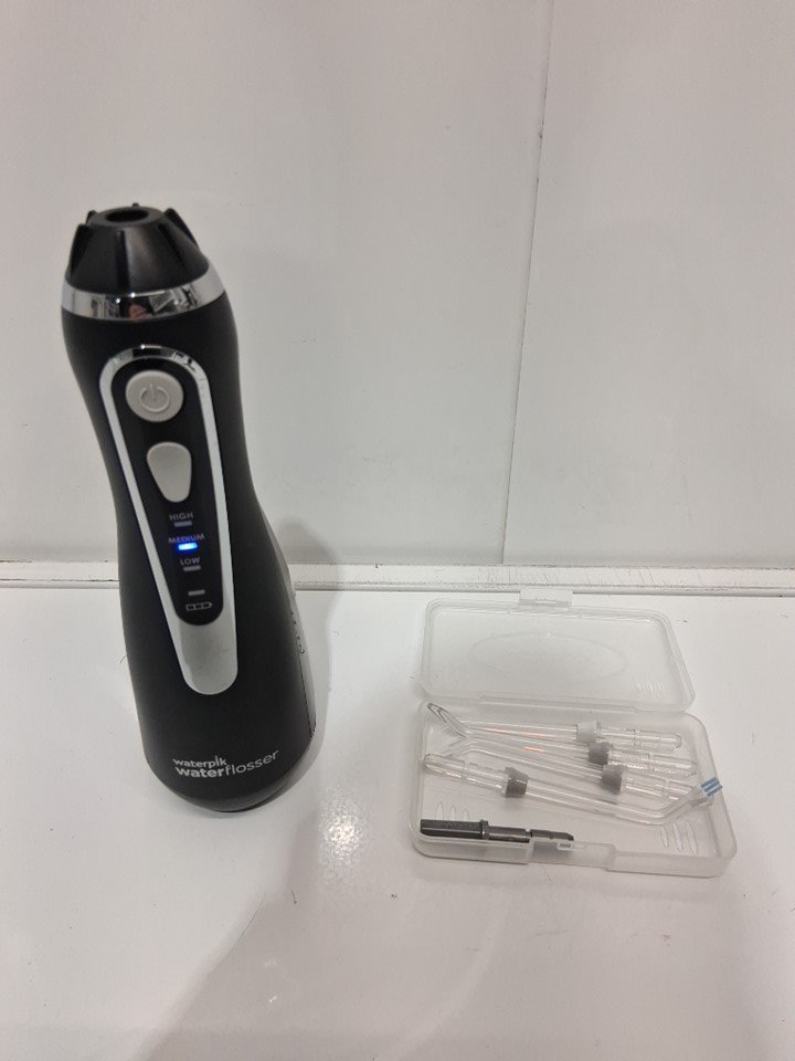missing the power cord. Includes floss piks. There is water drops in the tank