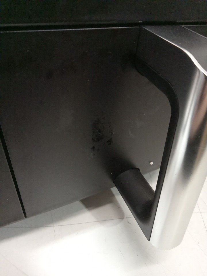 Scratch on the top and grease inside and out from previous use, can likely be cleaned. Tested for power only.
