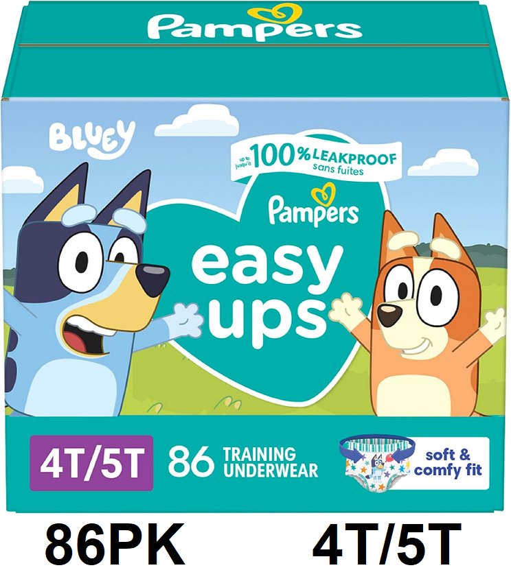 86PK Pampers Toddler Training Underwear Easy Ups Diapers Training Pants - bluey - SIZE 4T/5T