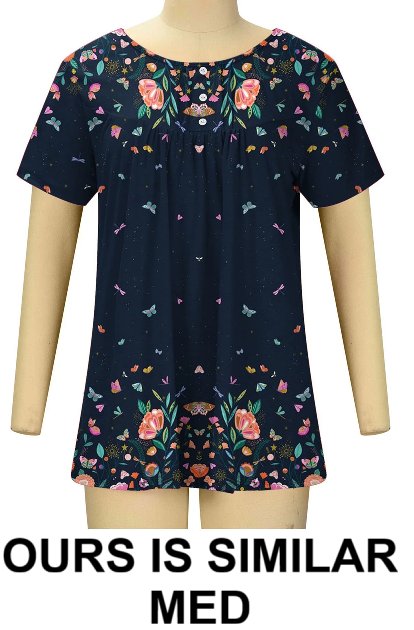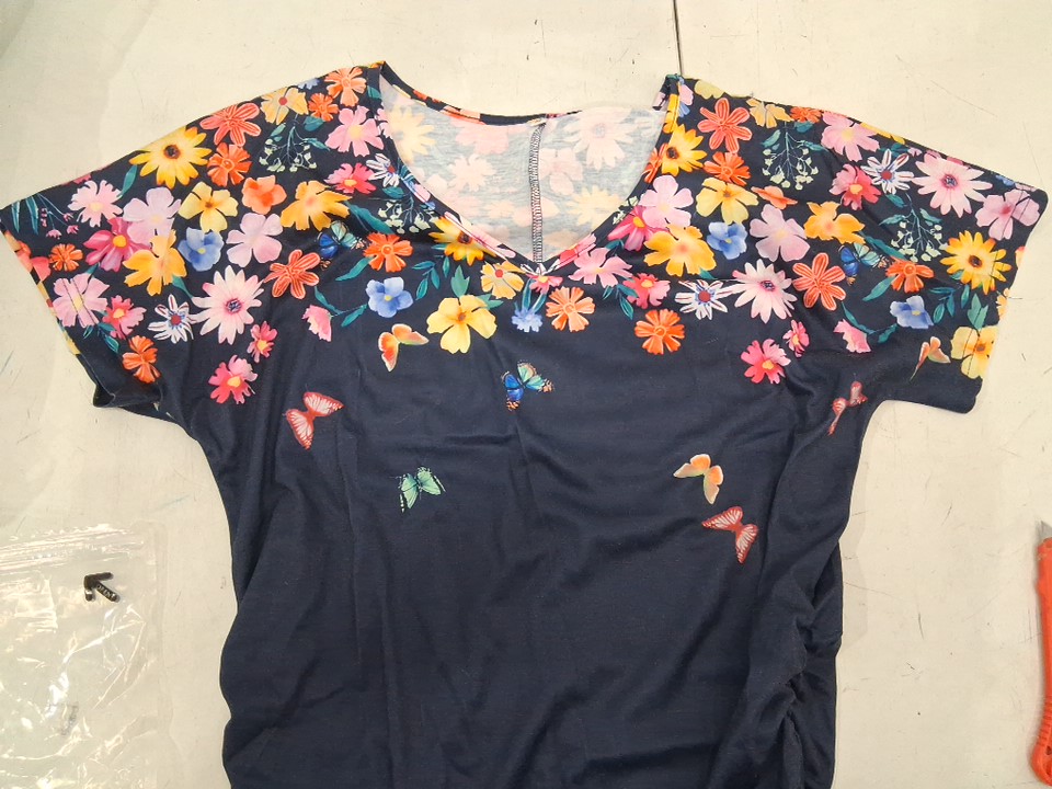 V NECK SHORT SLEEVE SHIRT - MEDIUM - FLORAL/BUTTERFLY PRINT