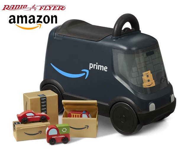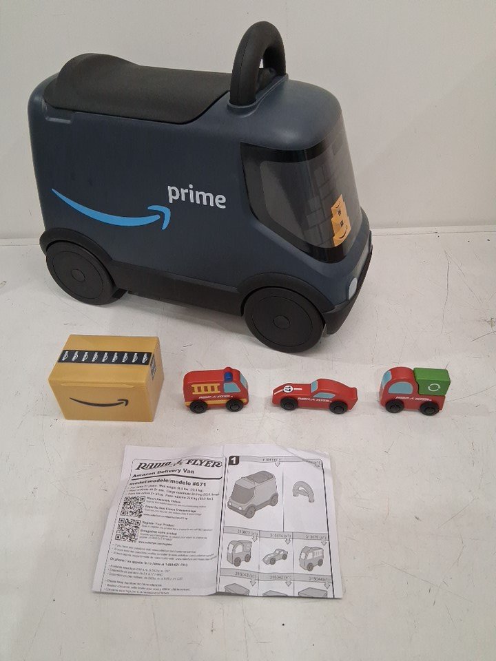 Radio Flyer Amazon Delivery Van Ride-On Toy with Toy Delivery Box and Vehicles - Blue (Model: 671)
