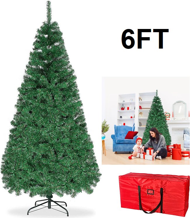 YAZI INDOOR/OUTDOOR ARTIFICIAL PINE CHRISTMAS TREE WITH lights & STORAGE BAG - 6FT - GREEN - (MODEL: 022463)