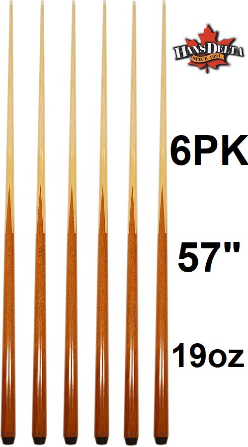 6pk HAN'S DELTA One-Piece Real 4-Prong House Bar Pool Cue Sticks - 57" - 19oz - brown