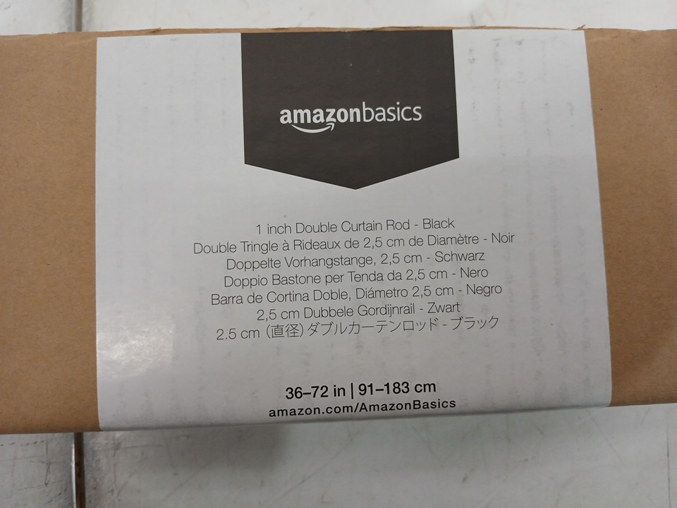 2PK AMAZONBASICS 1" EXTENDABLE DOUBLE CURTAIN ROD SET WITH ROUND FINIALS - EXTENDS FROM 36" TO 72" - BLACK