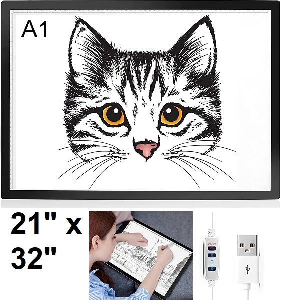 A1 tracing light box ultra thin dimmable LED light pad for sketching drawing - 21" x 32" - Black/white