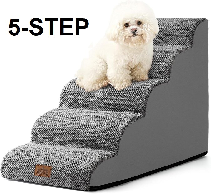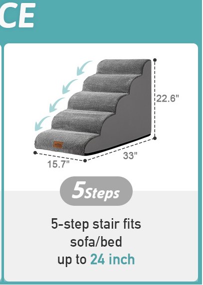 cozy kiss 5 step dog stairs with high density foam - 15.7" x 33" x 22.6" - grey
