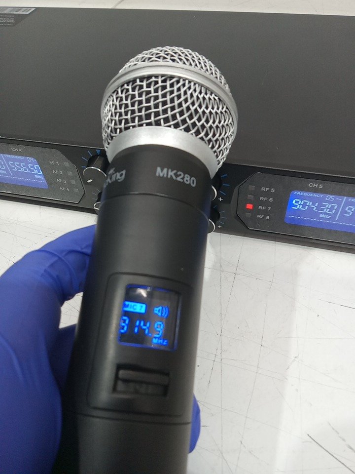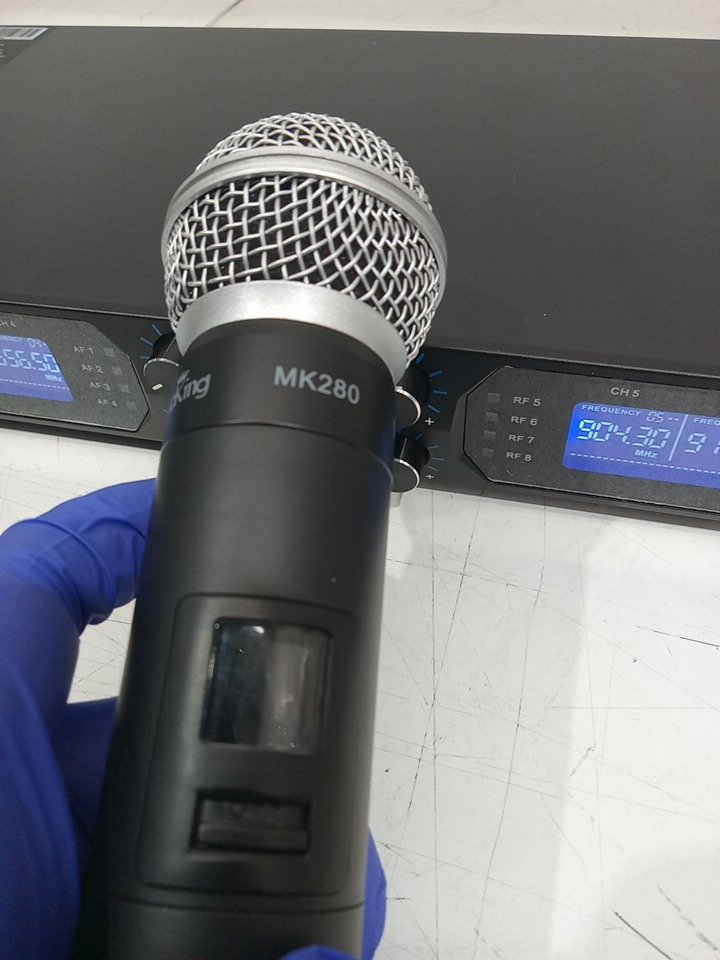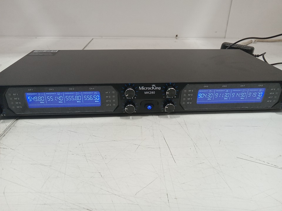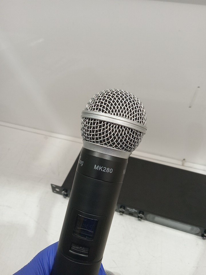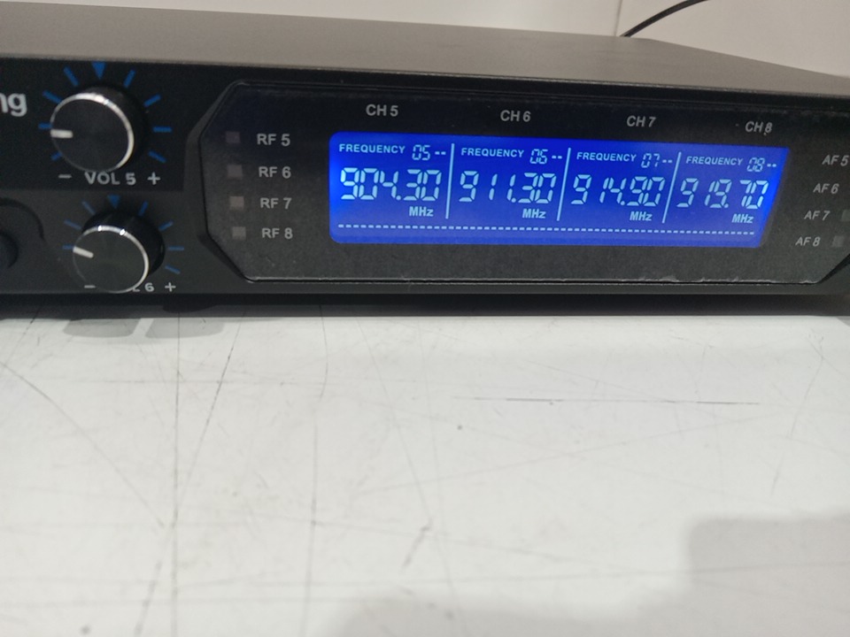 There are minor scratch marks on the base of the unit and there markings of the mic grip holders. One of the grip holder is missing from the original packaging. Tested for basic power only. (Please see photos)