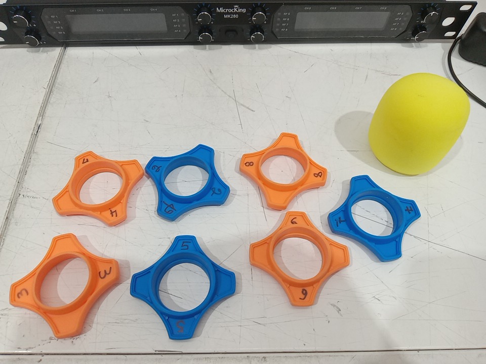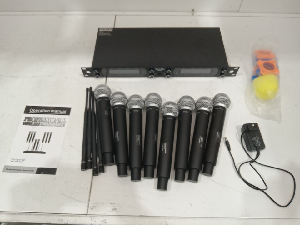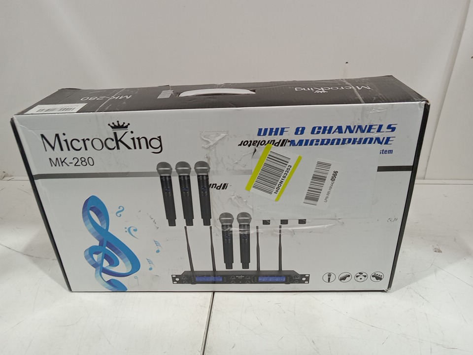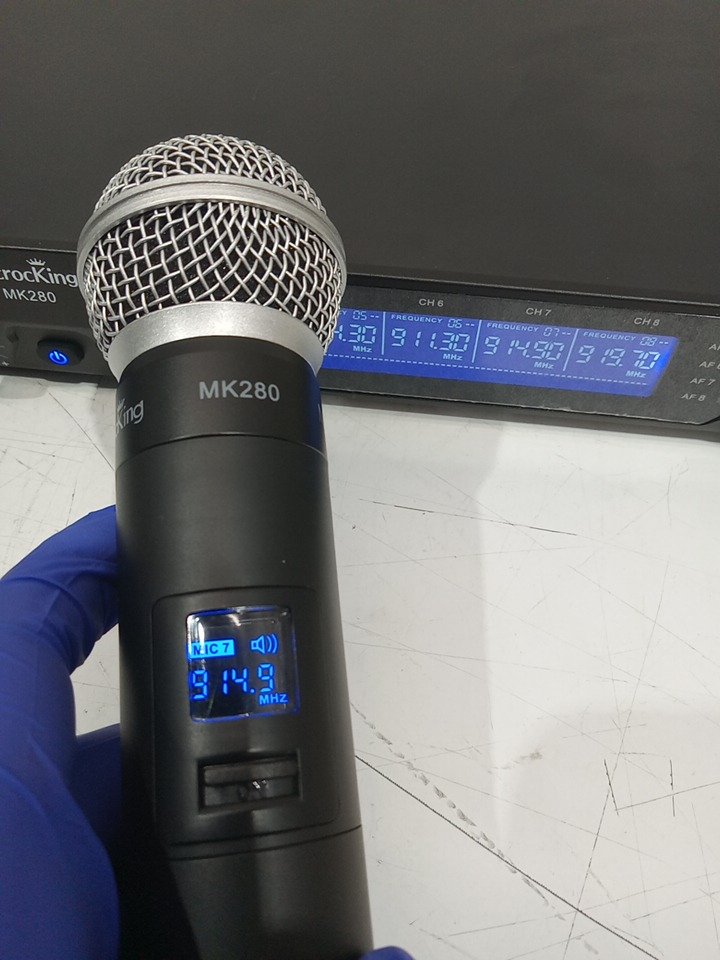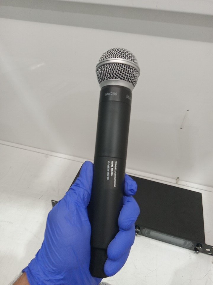 There are minor scratch marks on the base of the unit and there markings of the mic grip holders. One of the grip holder is missing from the original packaging. Tested for basic power only. (Please see photos)