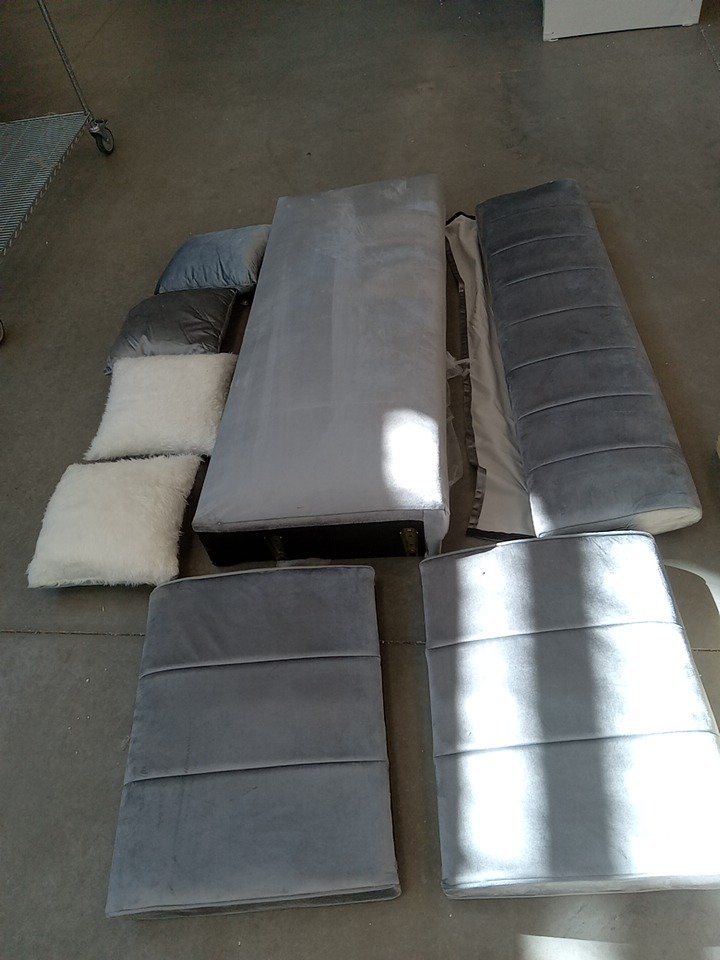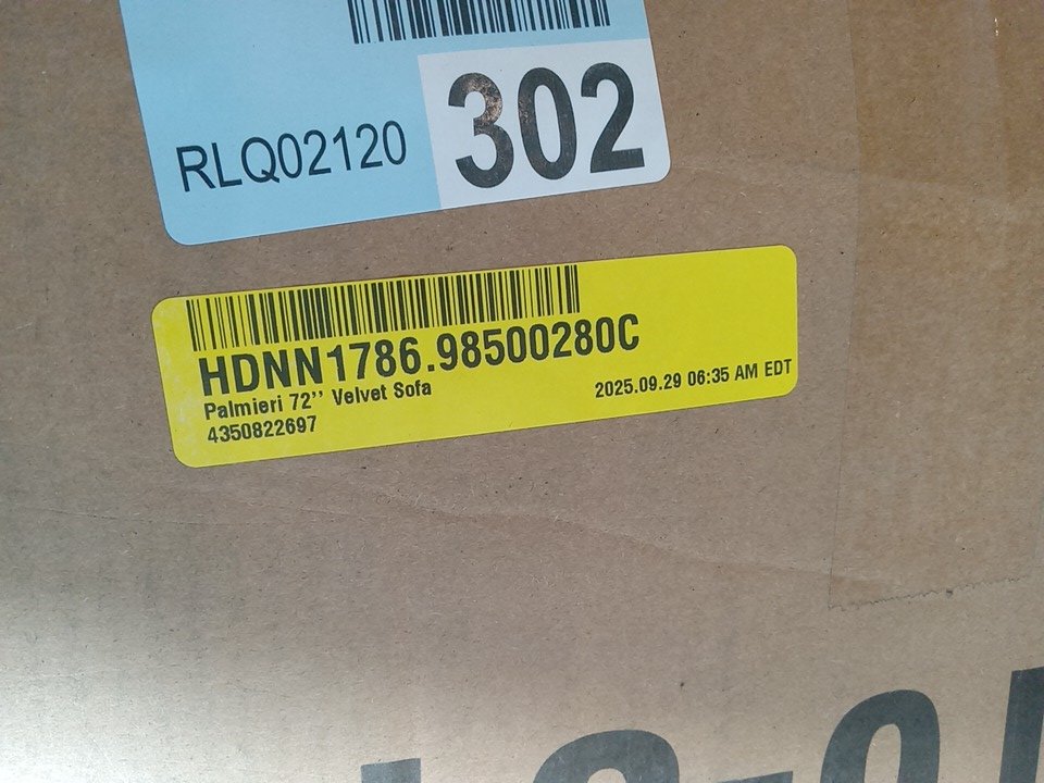 HMS 72" SCARLETT VELVET FLARED ARM SOFA WITH THROW PIULLOWS, SILVER/GREY (MODEL: 30016-311)
