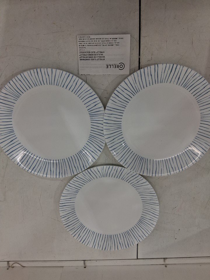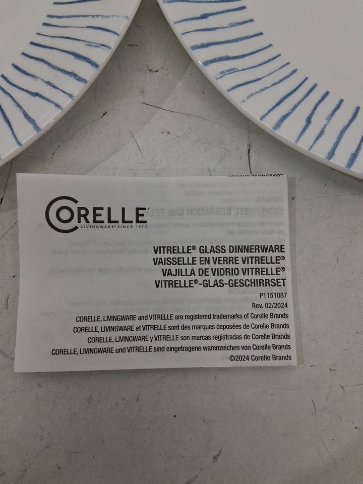 3PK Corelle Vitrelle Glass Dinner Plates Set - 11" - White/Blue Trim (Model: P1151087)