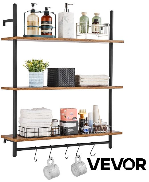 vevor 3-tier Industrial Pipe Shelf with wall mounts - 32'' x 9'' - rustic