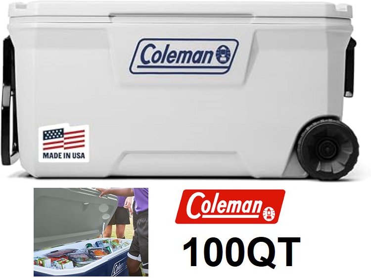 COLEMAN CLASSIC 316 SERIES 100QT WHEELED COOLER - 18.25" x 37" x 18.75" - WHITE
