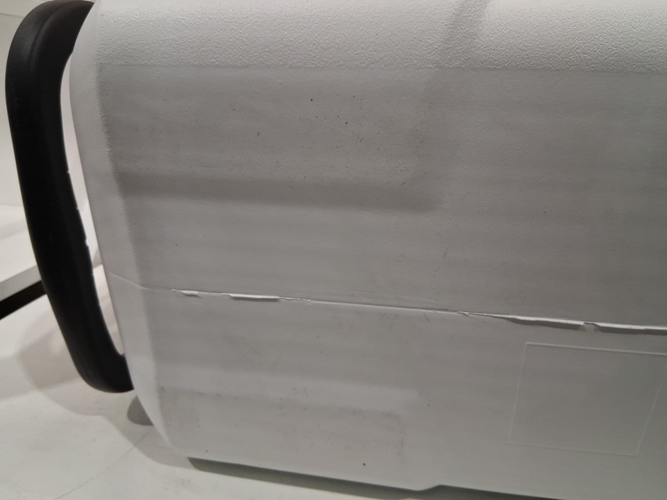 inside of the cooler is dirty and there is two small puncture holes near the top of the cooler and the seal on the back of the cooler seems to be coming up there is scratching on the bottom of the cooler as well these things indicate prior use