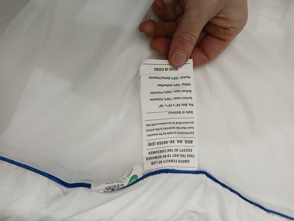 Plush Pillow Top Mattress Pad/Bed Topper - 54" x 75" x 15" - white blue trim