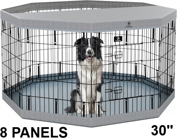 PJYuCien Dog Playpen Metal Foldable Dog Exercise Pen - 8 PANELS - 30" -BLACK - (MODEL: PJ003)