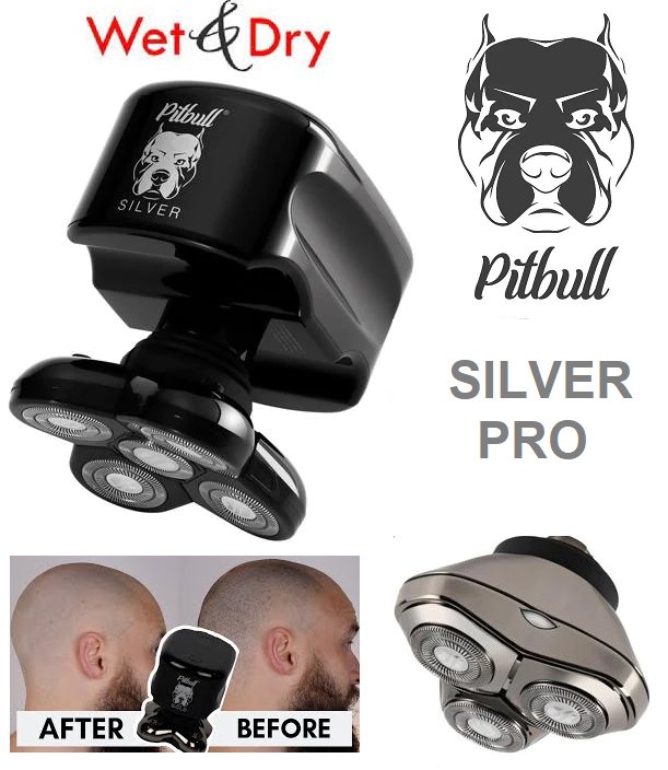 PITBULL SILVER PRO wet & dry SKULL & FACE DUAL HEAD RECHARGEABLE CORDLESS SHAVER- silver/black (model:pbs4-8700)