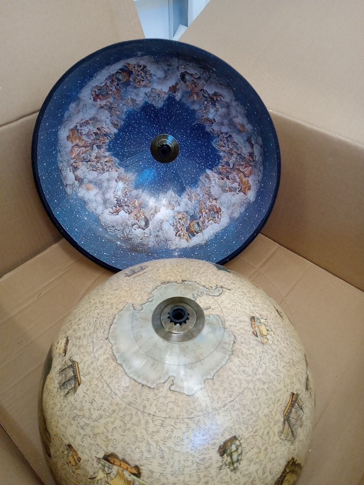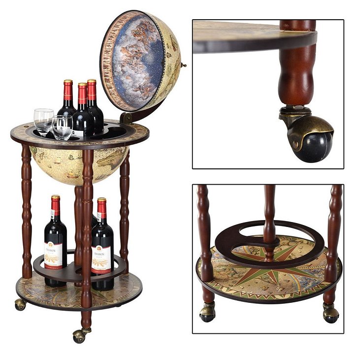 SAFSTAR 17.5" Italian Style Wooden Globe Liquor Bottle Wine Rack WITH STORAGE SHELF (MODEL: HW58775)