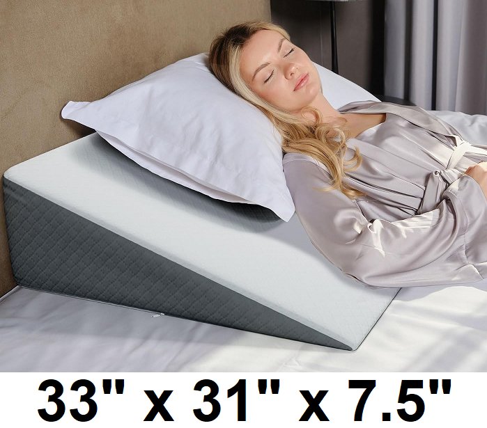 KOLBS EXTRA WIDE BED WEDGE PILLOW WITH MEMORY FOAM TOP and removable JACQUARD COVER - 33" x 31" x 7.5" - GREY (MODEL: kbbwc33317)
