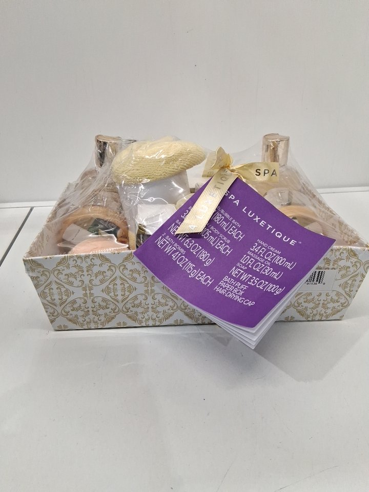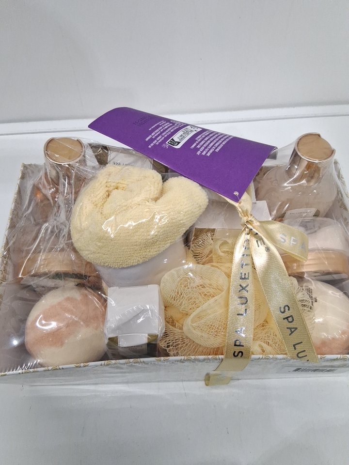 12PC SPA LUXETIQUE VANILLA SPA GIFT BASKET SET, MASSAGE OIL, BATH BOMBS & SALTS, SHOWER GEL, BODY LOTION & MORE